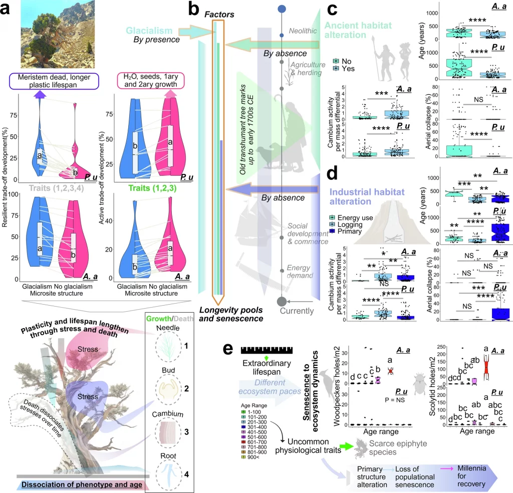 In contrast, forests with common or more homogeneous structures limit tree lifespan, preventing individuals from reaching their maximum potential age. The study also demonstrates that modern habitat alteration has significantly reduced the maximum attainable lifespan in most forests, highlighting the vulnerability of ancient trees in a rapidly changing world.