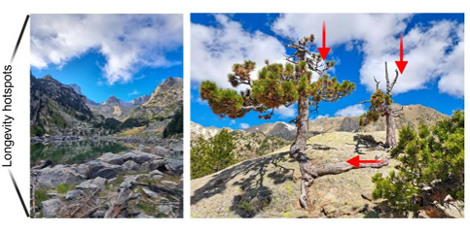 Our research team has published a new article in Communications Earth & Environment. The study, led by Ot Pasques and Sergi Munné-Bosch, reveals how complex habitat structures formed over millennia enable some trees to reach exceptional ages, over 1,000 years in mountain pine and 600 years in silver fir.